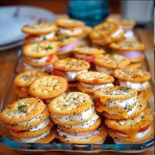 These delectable Ritz Cracker Party Sandwiches offer a unique spin on the beloved ham sliders, elevating the classic appetizer to a new level of taste and convenience. Each bite-sized sandwich features a savory combination of ham and Swiss cheese nestled between two crisp Ritz crackers. The delicious filling is enhanced by a mouthwatering blend of Worcestershire sauce, tangy mustard, rich butter, aromatic onion powder, and a sprinkle of poppy seeds, creating a flavor profile that is both complex and irresistible.