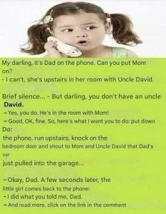 After a few seconds, someone answered. It was a little girl. The father then asked her: “Hello sweetheart, it’s Dad on the phone… Can you put Mom on?”