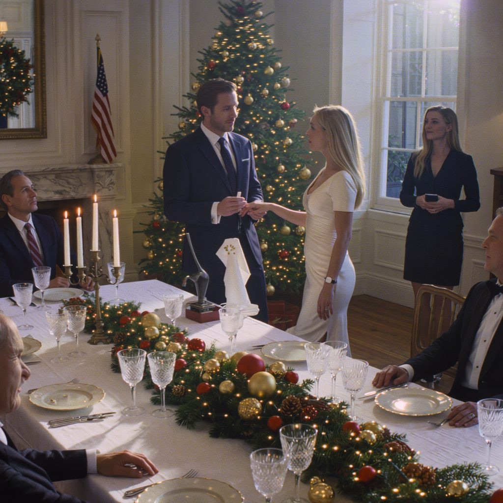The dining room stays silent. Even the fire in the hearth seems to hold its breath. Preston’s face has gone blank. Carefully, deliberately blank. The expression of someone watching their entire future collapse.